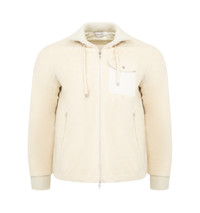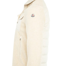 MONCLER Padded Zip-Up Sweatshirt featuring teddy fleece, down-filled nylon back, adjustable stand collar, zipper closure, nylon chest pocket with snap button closure, zipped pockets and hem with drawstring fastening. 73% polyester, 27% acrylic. 100% polyester. Padding: 90% down, 10% feather. Made in Moldova. DESIGNER STYLE ID: 8G000-26-89BBG COLOR: 200 BEIGE
