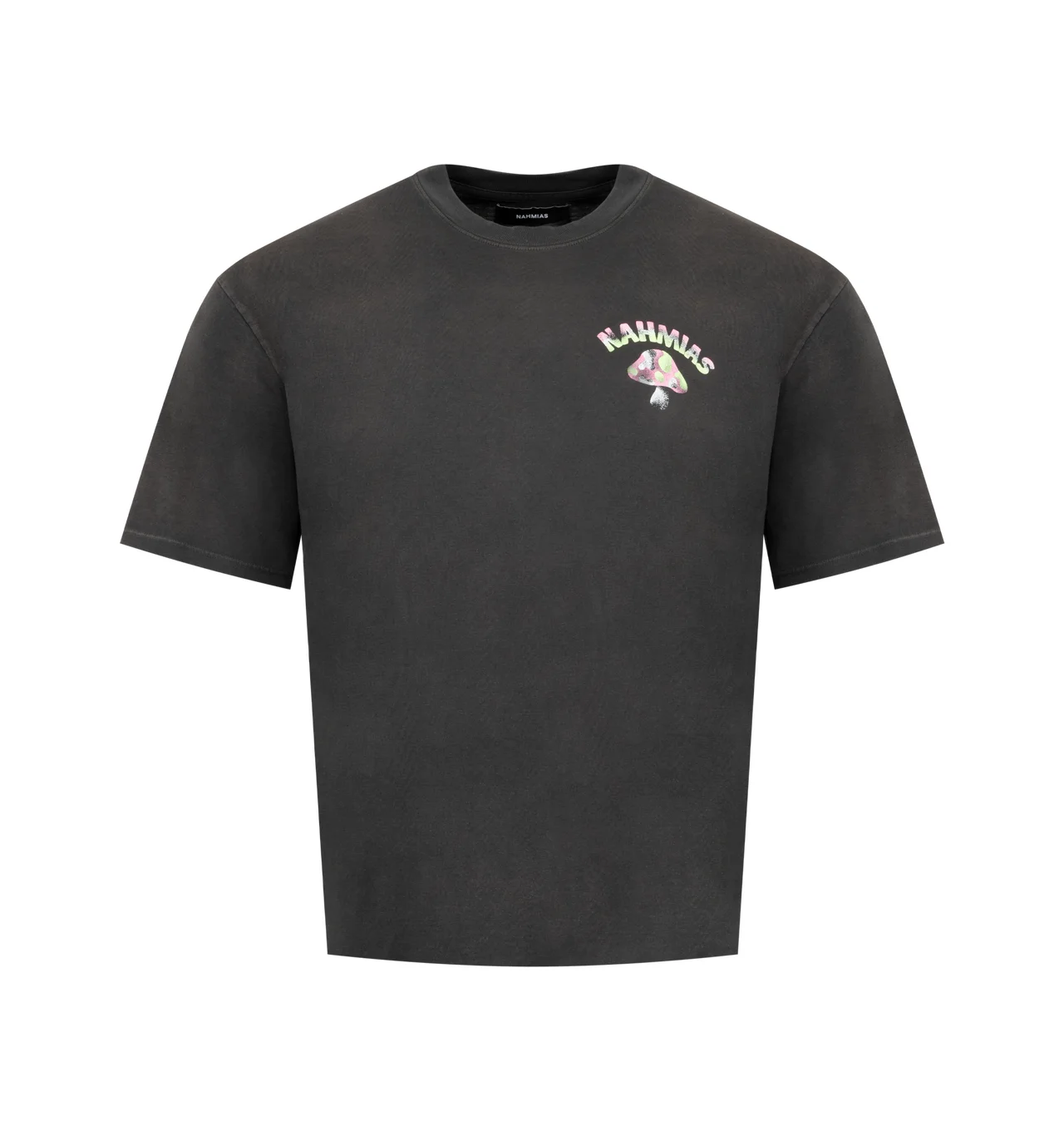 NAHMIAS California Trippin Box T-Shirt featuring crew neck, short sleeves, boxy fit and graphic on front and back. 100% cotton. DESIGNER STYLE ID: Y10-T23Q29-007 COLOR: AGED BLACK