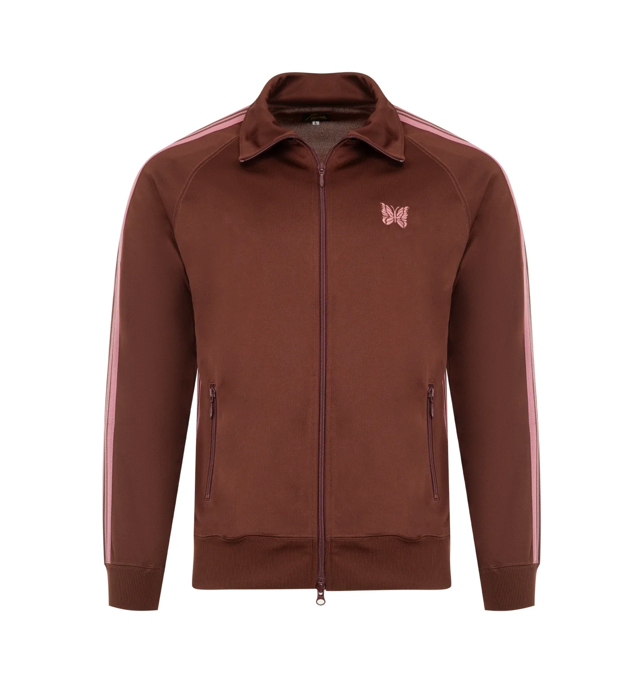 NEEDLES Track Jacket featuring a zipped closure, zipped pockets, striped taping, ribbed trims and embroidered branding. 100% polyester. Made in Japan. DESIGNER STYLE ID: RW314 COLOR: BROWN