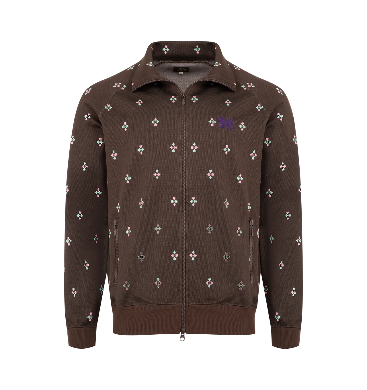 NEEDLES Poly Jacquard Track Jacket featuring smooth poly jacquard, a relaxed silhouette, zip closure, the iconic butterfly logo and zipped pockets. 100% polyester. Made in Japan. DESIGNER STYLE ID: RW312 COLOR: BROWNE