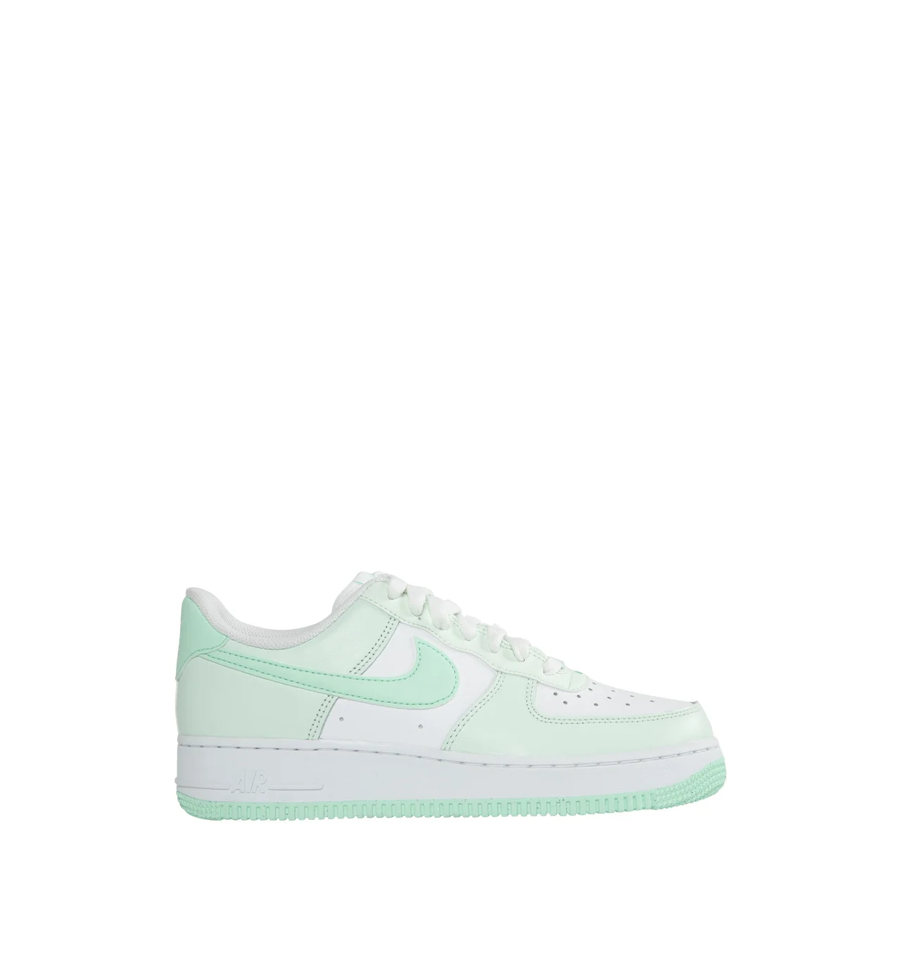 NIKE Air Force 1 '07 Premium featuring padded collar, leather and textile upper, textile lining and rubber sole. DESIGNER STYLE ID: FZ4123-394 COLOR: BARELY GREEN/MINT FOAM/WHITE