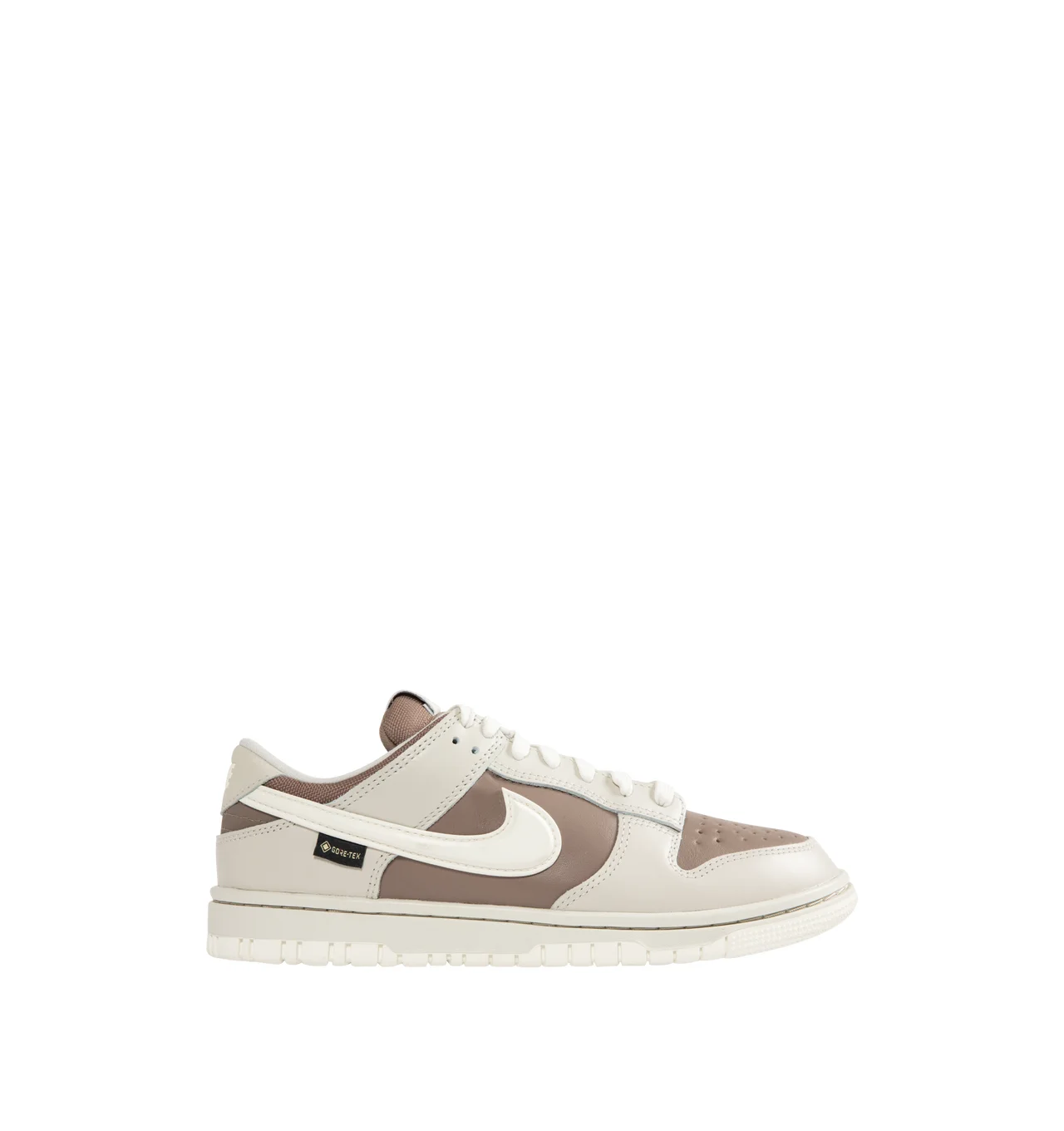 NIKE Dunk Low GORE-TEX Sneaker featuring waterproof GORE-TEX finish, low-cut silhouette, reflective-design detail, padded collar, foam midsole and rubber outsole with classic pivot circle. DESIGNER STYLE ID: HQ2053-002 COLOR: LIGHT BONE/SAIL/MINK BROWN