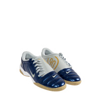 NIKE Total 90 Sneaker featuring authentic soccer style, original quilted upper, asymmetrical lacing, flat rubber sole, synthetic leather upper with Total 90 logos on each side and padded collar. DESIGNER STYLE ID: HQ2851-402 COLOR: BLUE VOID/LT SMOKE GREY/WHITE
