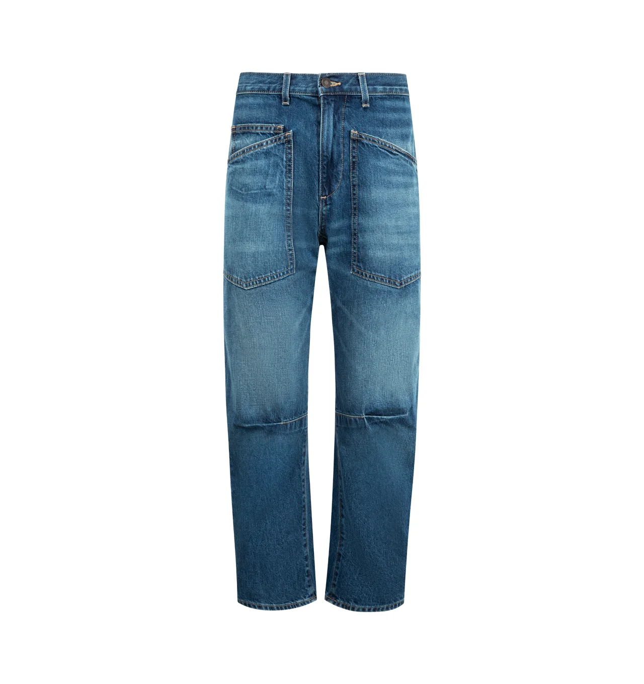 NILI LOTAN Shon Jean featuring featuring mid-rise, relaxed fit barrel leg jean in Japanese stretch denim, uniquely curved silhouette, seam detail at knees, gusset at inseam, zip fly, shank closure, top-stitched front and back patch pockets and belt loops. 98% cotton, 2% polyurethane. Made in USA. DESIGNER STYLE ID: 10193-W1451 COLOR: BEDFORD WASH