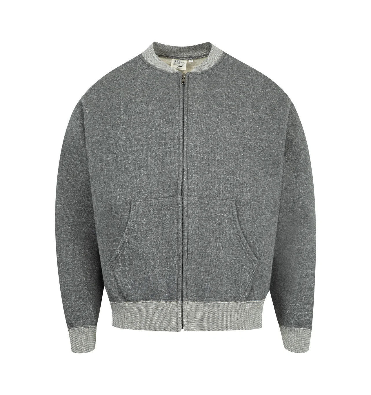 ORSLOW Front Zip Densely Knit Sweatshirt featuring a relaxed fit, zip-front closure, midweight cotton fleece jersey, rib-knit bomber style collar, a YKK zipper, hand pockets at the waist and ribbing at the cuffs and hem. 100% cotton. Made in Japan. DESIGNER STYLE ID: 01-0042-60 COLOR: 60 CHARCOAL GREY