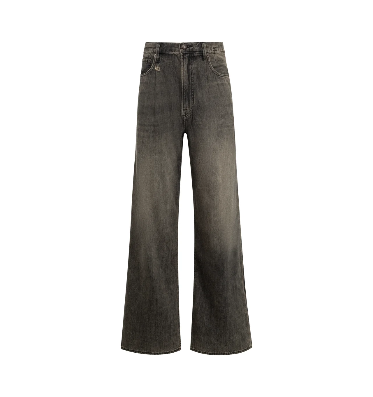 R13 Damon Pleated Wide Leg Jean featuring zip fly with button closure, 5-pocket design, pleated fabric details at waist, whiskering along front and heavily faded and lightly distressed throughout. 100% cotton. Made in Italy. DESIGNER STYLE ID: R13W3147-019A COLOR: 019A ELLERY BLACK