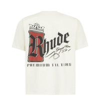 RHUDE Fumar 91 T-Shirt featuring relaxed fit, crewneck, short sleeves, logo graphic on front and back. 100% cotton. DESIGNER STYLE ID: RHSS26TT07012 COLOR: 3160 VINTAGE WHITE/BLACK/RED