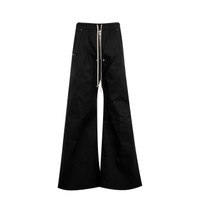 RICK OWENS Wide Bela Trousers featuring front zip fastening, elasticated drawstring waistband, exposed zipper, two diagonal pockets to the sides and two rear flap pockets DESIGNER STYLE ID: RU02E1366-TE COLOR: 09 BLACK