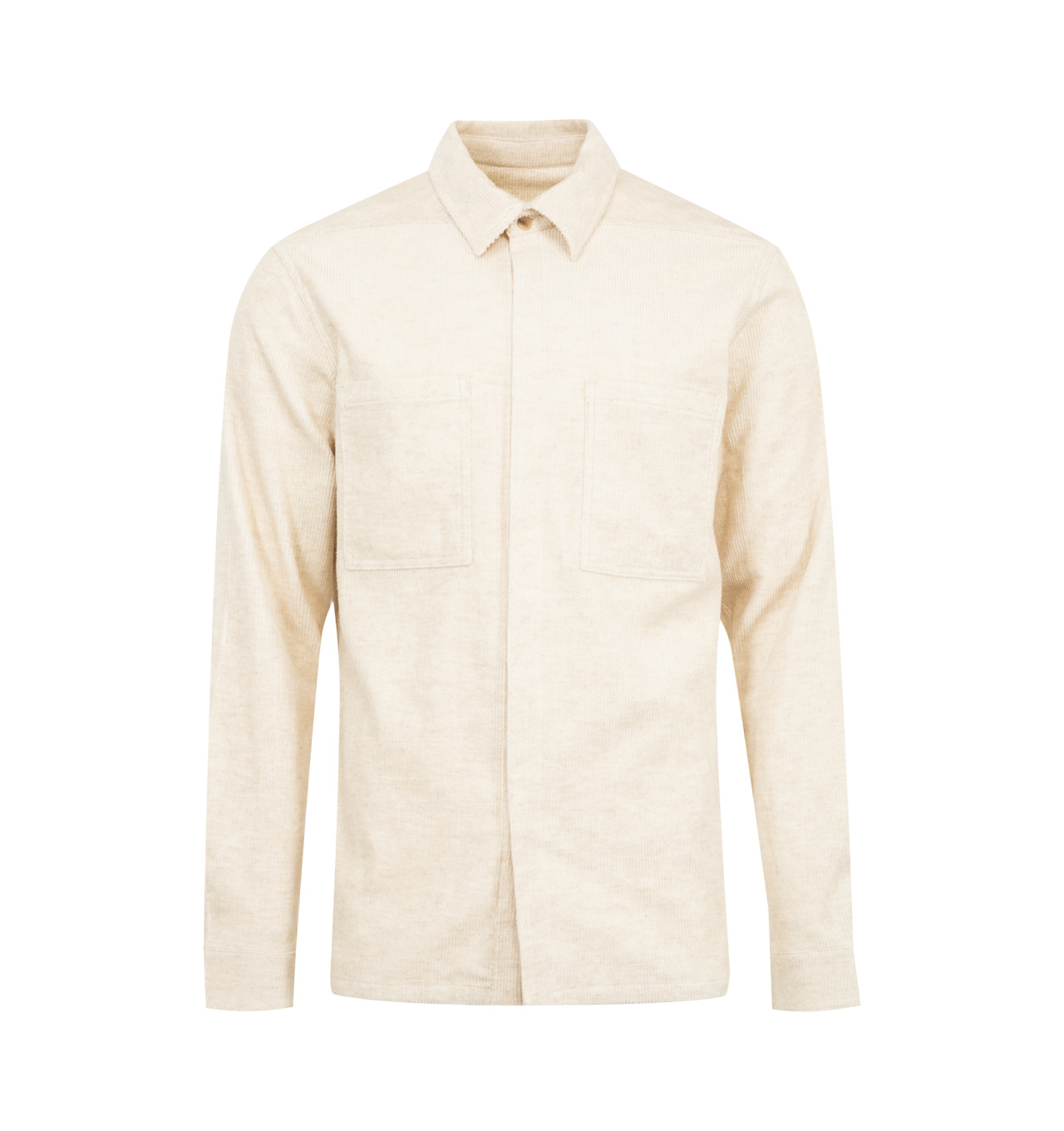 RICK OWENS Work Shirt featuring classic collar, long sleeves, front button closure, buttoned cuffs, level shoulder seams, two chest patch pockets and back yoke. 74% cotton, 26% linen. DESIGNER STYLE ID: RU02E1292-MLC COLOR: 21 NATURAL