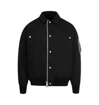 SACAI Rip Stop Blouson Jacket featuring two-way zip closure with press-stud placket, collar, ribbed cuffs and hem, zip pocket on sleeve and side pocket. Made in Japan. DESIGNER STYLE ID: 25-03772M COLOR: 001 BLACK