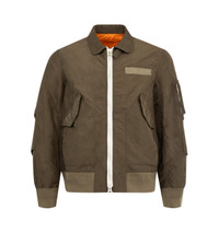 SACAI Treated Nylon Twill Blouson featuring rib-knit hem and cuffs, two-way zip closure, flap pockets at front, utility pocket at sleeve and lined. 100% nylon. Lining: 100% polyester. DESIGNER STYLE ID: 26-03913M COLOR: 531 D KHAKI