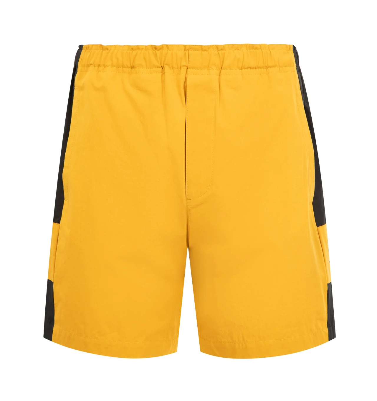 SAINT LAURENT Bermuda Shorts featuring color-block bermuda shorts made with certified cotton, an elasticized waist, logo embroidery at the side, two concealed side pockets and one welt pocket at the back. 100% cotton. Made in Italy. DESIGNER STYLE ID: 858566-YZ9GA COLOR: 7600 CURRY/NOIR
