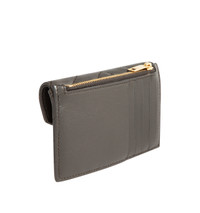 SAINT LAURENT Zip Card Case with flap in soft nappa leather, decorated with the CASSANDRE and chevron-quilted topstitching, leather lining, gold-toned hardware, snap-button closure, one zip coin pocket and five card slots. 5.1" x 3.1" x 0.7". Calfskin leather. Made in Italy. DESIGNER STYLE ID: 612808-AAA44 COLOR: 1997 URBAN CHIC