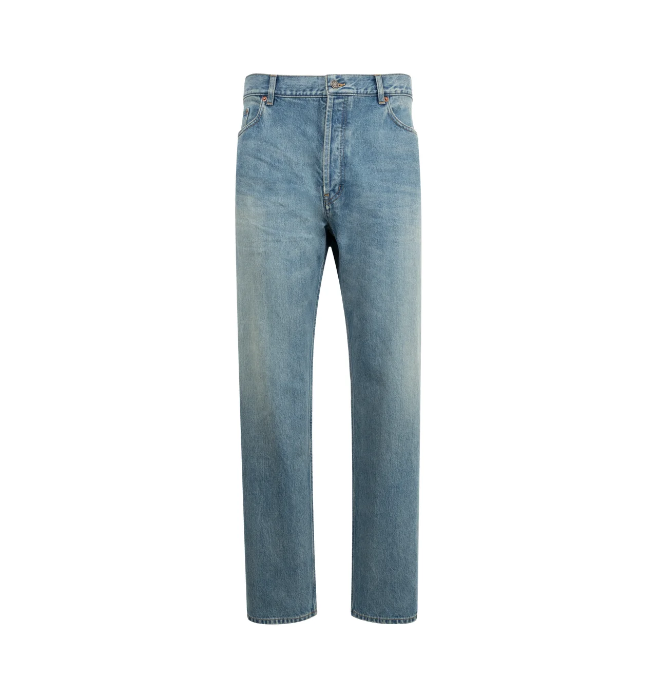 SAINT LAURENT Mick Long Jeans featuring mid-rise, five-pocket style, a long straight leg and button fly. 100% cotton. DESIGNER STYLE ID: 816412-Y35AS COLOR: 4415 NONZA BLUE