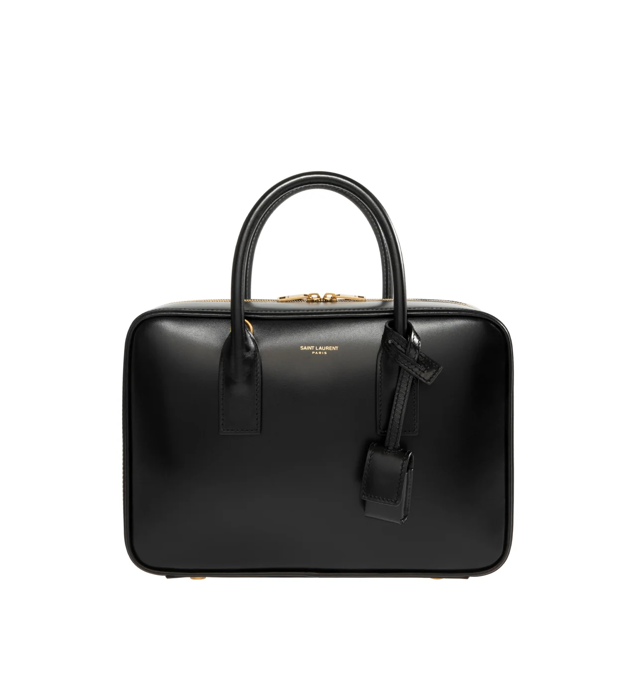 SAINT LAURENT Sac De Jour featuring smooth leather, structured bag, top handles for hand carry, a wide double-zip opening, leather lining, bronze-tone hardware, zip closure, one zip pocket and one flat pocket. 9.8" x 7.5" x 3.5". Calfskin. Made in Italy. DESIGNER STYLE ID: 840862-0SX0W COLOR: 1000 NERO