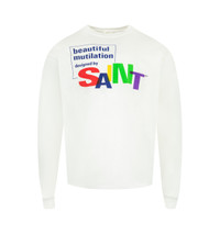 SAINT MICHAEL Beautiful Saint Tee featuring crew neck, long sleeves, ribbed cuffs and screen print on front and back. 100% cotton. Made in Japan. DESIGNER STYLE ID: SM-HR1-0000-036 COLOR: WHITE