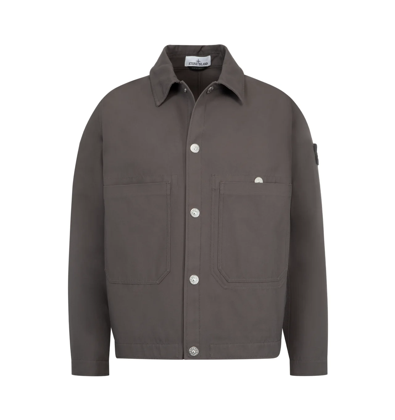 STONE ISLAND Coach Jacket featuring snap-fastened throat latch under collar to wear standing, waist-level top-entry patch pockets, vertical hand pockets with tape trim and concealed snap, three internal top-entry pockets; one with snap fastening that is visible on the exterior, Stone Island badge on left sleeve, adjustable cuffs with snap and snap fastening. 100% cotton. DESIGNER STYLE ID: 4100076-S0164 COLOR: V0065 CHARCOAL