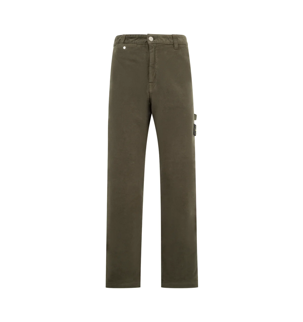 STONE ISLAND Loose Fit Trousers featuring slanted hand pockets, small pocket on right side under waistband with snap, back patch pockets with slanted entrance and snap, tape loop under left pocket, small vertical pocket with snap on back of right leg, Stone Island badge on left leg, zip and button fly and loose fit. 100% cotton. DESIGNER STYLE ID: 3100023-S0228 COLOR: V0054 MILITARY GREEN