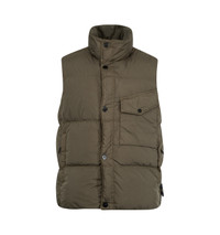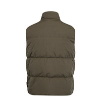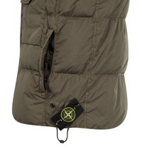 STONE ISLAND Padded Vest featuring standing down-padded collar, chest pocket on left side with triangular flap and snap, standing hand pockets with hidden zipper, one inner pocket with Stone Island Compass logo embroidery and button fastening, Stone Island badge on bottom left side, drawstring at hem and two-way zipper under snap-fastened placket. 100% polyamide/nylon. DESIGNER STYLE ID: G100003-S0A23 COLOR: V0054 MILITARY GREEN