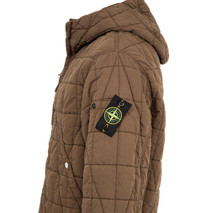 STONE ISLAND Quilted Short Parka featuring padded hood, angled patch hand pockets with snap closure, Stone Island badge at the left sleeve, adjustable cuffs with snap, side tape adjusters at hem and two-way zip fastening. Organic cotton and recycled nylon. DESIGNER STYLE ID: 4100014-S0300 COLOR: V007C UMBER
