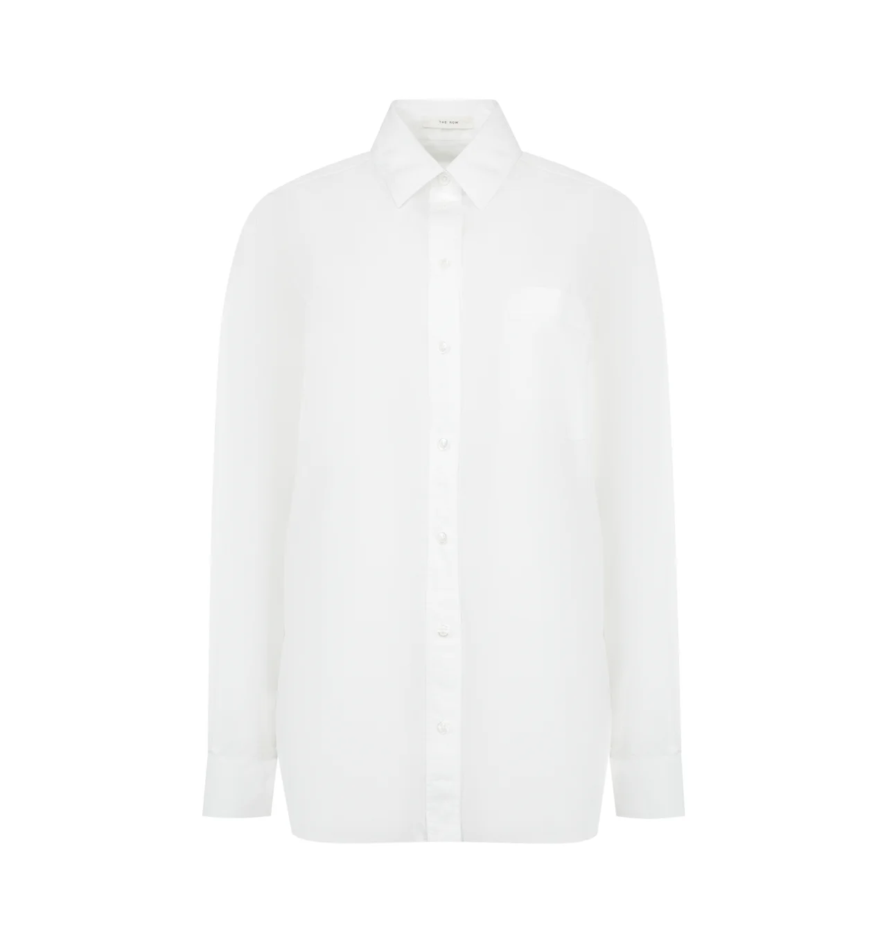 THE ROW Gavina Shirt featuring classic button-up shirt in smooth sea island cotton chambray with front patch pocket, slim back yoke and exposed front button placket. 100% cotton. Made in Italy. DESIGNER STYLE ID: 10477-W4280 COLOR: WHITE