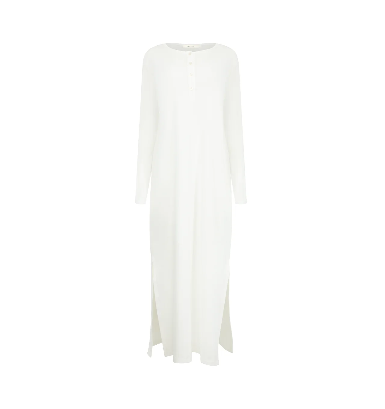 THE ROW Latoya Dress featuring fitted ankle-length dress in ultrasoft Japanese cotton jersey with low crewneck, side hem slits and front button placket. 100% cotton. Made in Italy. DESIGNER STYLE ID: 10860-K732 COLOR: WHITE