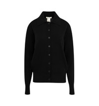 THE ROW Lillia Cardigan in Cashmere in soft cashmere with seamless construction, slightly oversized fit, collared neck, front button closure, and ribbed collar, cuffs, and hem. 100% cashmere. Made in Italy. DESIGNER STYLE ID: 10038-Y556 COLOR: BLACK