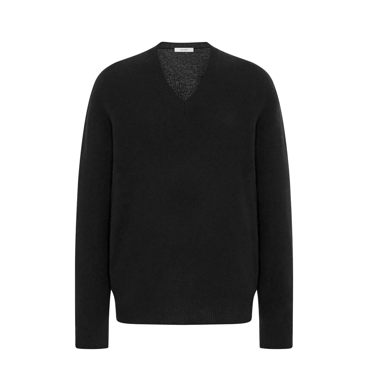 THE ROW Numi Sweater featuring long-sleeved v-neck sweater in ultrasoft Japanese cashmere with oversized fit, seamless construction, and ribbed neckline, cuffs, and hem. 100% cashmere. Made in Italy. DESIGNER STYLE ID: 10711-Y973 COLOR: BLACK