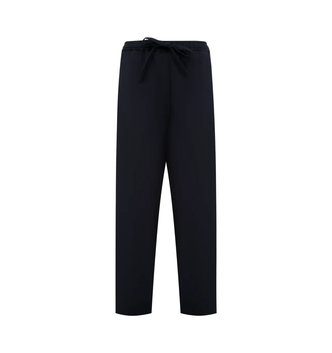 THE ROW Orieno Pant featuring relaxed mid-rise pant in structured wool gabardine with straight leg, side seam pockets and drawstring waist. 100% wool. Made in Italy. DESIGNER STYLE ID: 10670-W2812 COLOR: DARK NAVY