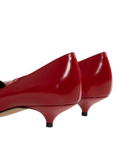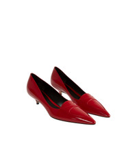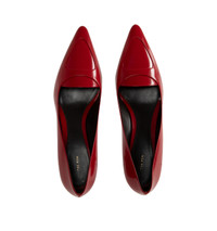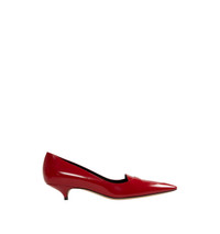 THE ROW Viv Kitten Heel featuring pointed kitten heel, polished calfskin leather, layered vamp detail, leather sole, and rubber heel cap. 100% calfskin leather. Leather sole. Made in Italy. DESIGNER STYLE ID: F1579-L604 COLOR: SCARLET