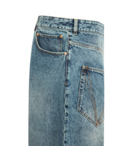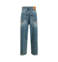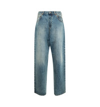 VETEMENTS Back To Front Wide-Leg Denim Jeans featuring concealed hook-and-eye and zip-fly fastening at front, exposed button fastening at back, relaxed fit, high-rise, wide leg, belt loops, two patch pockets and brand patch at front, two slip pockets at back and faded wash. 100% cotton. Made in Italy. DESIGNER STYLE ID: MH76DP021YB COLOR: DISTRESSED BLUE