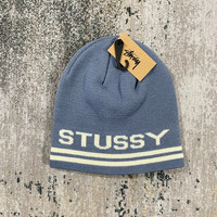 2 LINE STUSSY BEANIE STRIPE - FADED BLUE