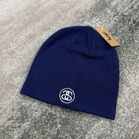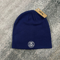 SMALL STUSSY LOGO SS LINK BEANIE // NAVY