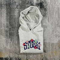 STUSSY FLORAL HOODIE ASH HEATHER // LARGE