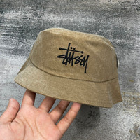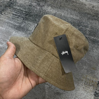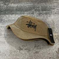 STUSSY LOGO CANVAS BUCKET HAT // BROWN