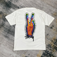 STUSSY PEACE SIGN TEE WHITE 📏(Measurements are taken lying flat). SIZE : MEDIUM BRAND NEW WITH TAG DEADSTOCK 100% COTTON 💬 Any Questions and More Details Feel Free To Contact Us. Make an offer but please no low-balls. Available for Bundle Deals. Your Item Will be shipped 1-2 days after payments. 📍 Please make sure your address is complete and correct. Kindly leave your phone number for shipping purposes. *All Sales are Final no Return or Refund* Thank You :)