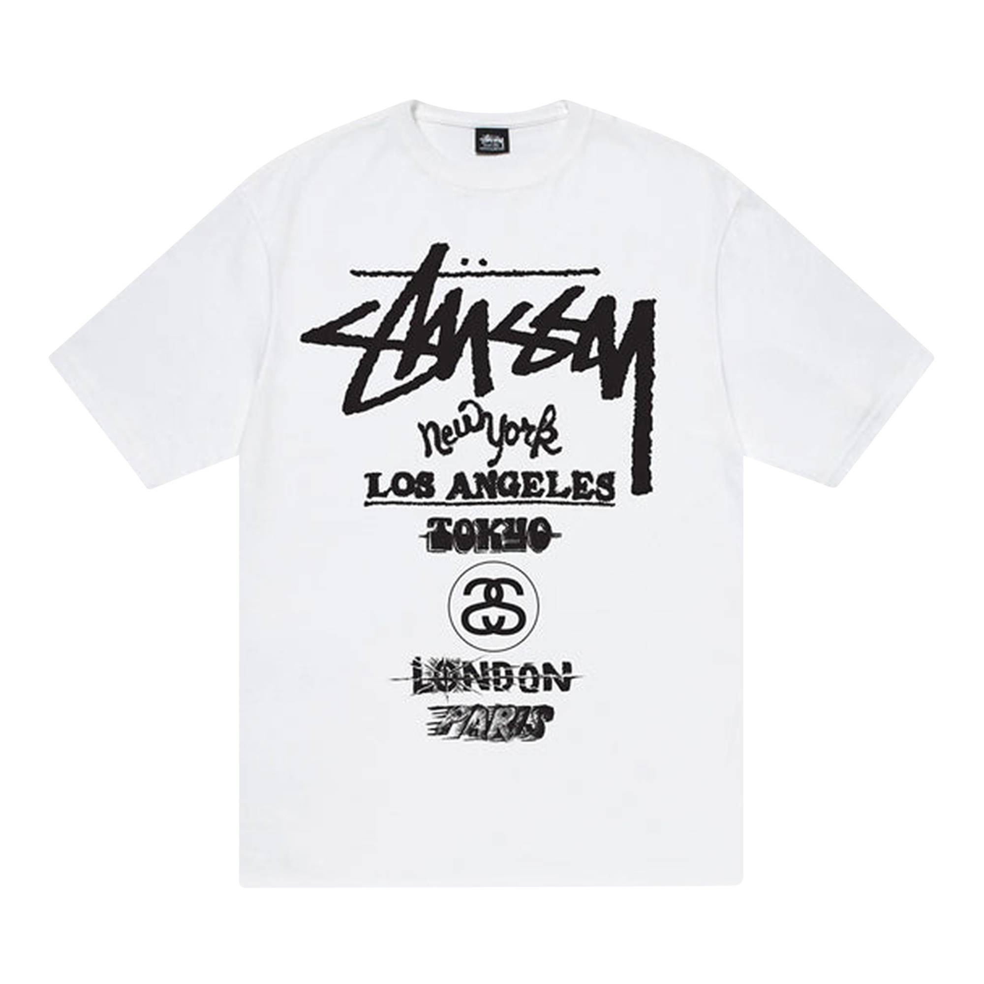 STUSSY TOUR TEE SIZE : LARGE COLOR : WHITE BRAND NEW WITH TAG 💬 Any Questions and More Details Feel Free To Contact Us. Make an offer but please no low-balls. Available for Bundle Deals.