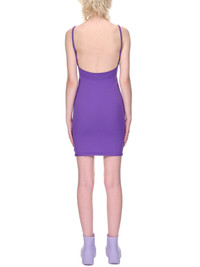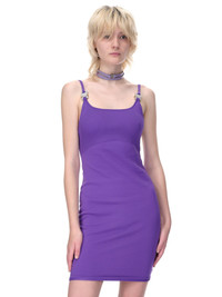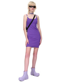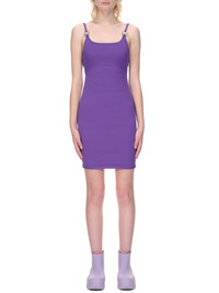 1017 Alyx 9SM dress in purple, sleeveless, adjustable straps featuring signature micro-buckle closure, fitted silhouette. Made in Italy Standard Sizing. Composition: 100% Polyamide Model is 5ft 8” and is wearing a size S. Bust: 32” Waist: 24” Hip: 35"