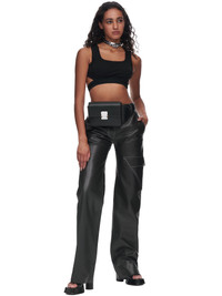 1017 ALYX 9SM leather pants in black. Contrast stitching throughout, mid waist, belt loops, button/zipper closure, 4-pockets, left side flap pocket, straight fit. Made in Italy Italian Sizing Composition: (Main) Calf Leather, (Lining) 100% Viscose Model is 5ft 9” and is wearing a size 40. Bust: 32” Waist: 24.5” Hip: 35.5"