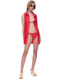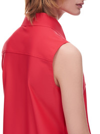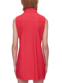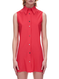 1017 Alyx 9SM dress in pink, spread collar, front button closure, sleeveless, mini length, silver-tone hardware. Made in Italy Composition: 78% Polyamide, 22% Elastane. Italian Sizing. Model Measurements: Model is 5ft 8” and wearing a size 40. Bust: 32” Waist: 24” Hip: 34"