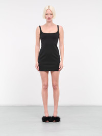 16ARLINGTON dress in black, paneled viscose-blend construction, squared neckline, shoulder straps, strap & neckline glass embellishment, sleeveless, armscyes, partially open back, side concealed zip closure, straight hem, mini-length, slim fit. Made in UK 64% Viscose 33% Nylon 3% Polyurethane UK Sizing Model is 5'9" wearing size 6. Bust: 32" Waist: 24" Hips: 34"