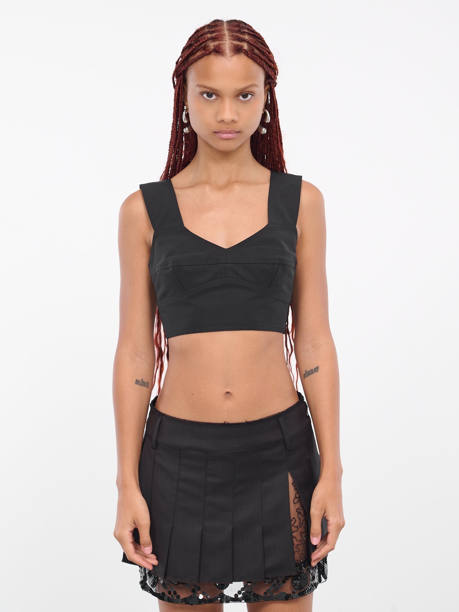 16ARLINGTON black top, sculpted bra design, bonded satin, thick straps, back hook & eye closure, fitted. Made in UK 100% Polyester UK Sizing Model is 5'8" wearing size 8. Bust: 32" Waist: 24" Hips: 34