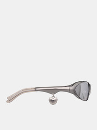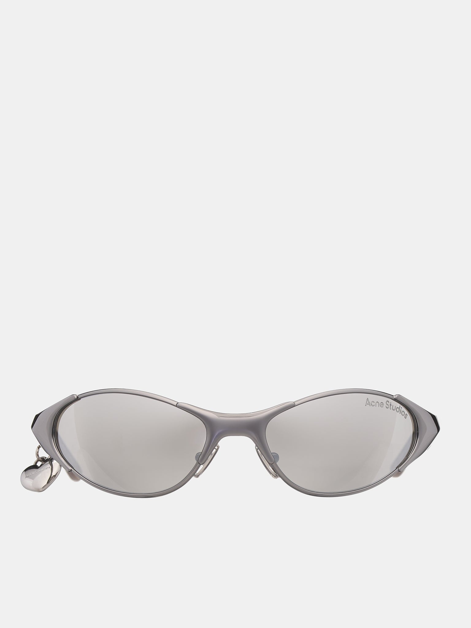 ACNE STUDIOS sunglasses in silver, Monel & Niclafor construction, oval frames, grey-tinted nylon lenses, temple logo-engraved charm, adjustable nose pads, case included. Frame: 50% Monel 50% Niclafor Lens: 100% Nylon One Size