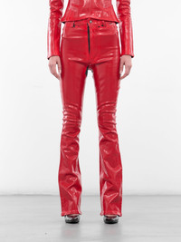 Red Latex Slim Trousers