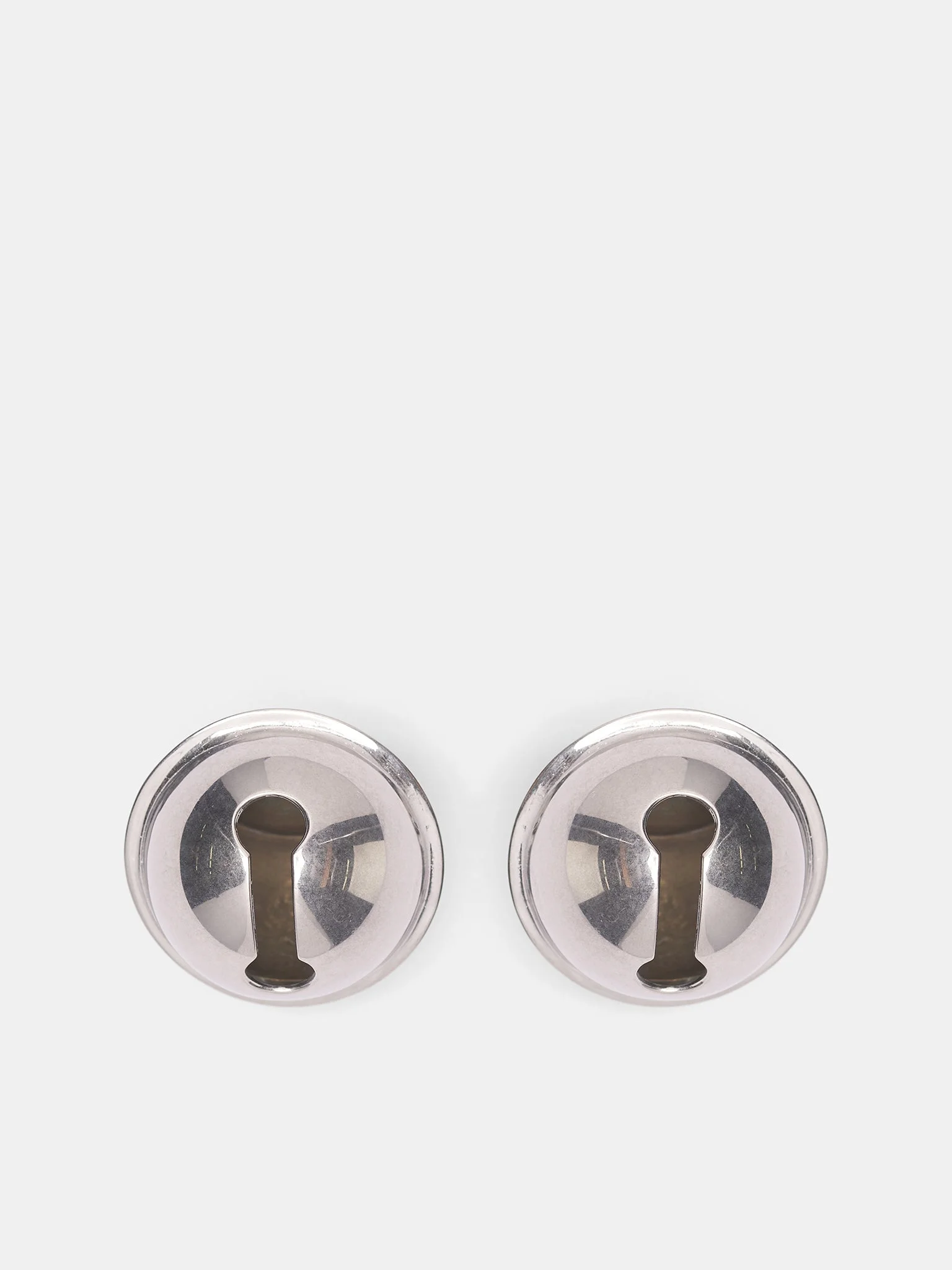 Featuring: • Bell-shaped metal earrings • Semi-matte silver finish • Engraved Acne Studios logo • Butterfly closure • Shell: 100% Brass • One size