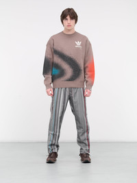 ADIDAS x SONG FOR THE MUTE sweater in brown, nylon-polyacrylic-wool blend, paneled knit construction, multicolor abstract pattern, ribbed crewneck, chest logo embroidery, long sleeves, rib-knit cuffs & hem, back hem logo patch, straight hemline, relaxed fit. 64% Polyacrylic 25% Recycled Polyamide 7% Wool 4% Elastane Standard Sizing Model is 6’1” wearing size M. Shoulders: 19” Chest: 38” Waist: 31”