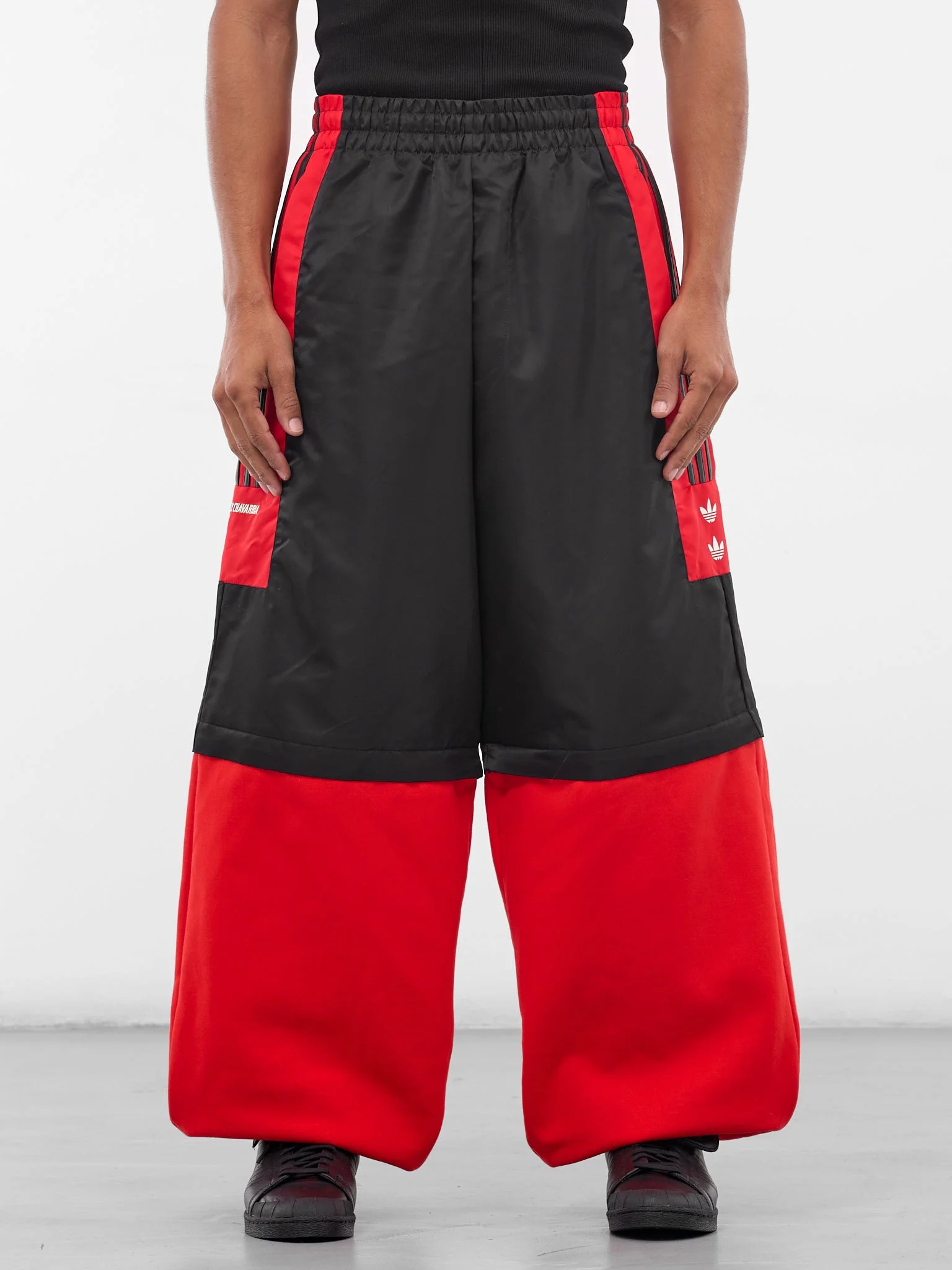 Black and red paneled track pants with contrast paneling, elasticated waistband, and signature three stripes at sides. Featuring: • Baggy fit • Wide leg • Paneled construction with contrast paneling • Elasticated waistband • Side and back welt pockets • Signature three stripes at sides • Trefoil and collaboration branding at sides • Elasticated cuffs • Willy Chavarria and Adidas collaboration • Made in China • 83% Cotton 17% PET • Standard sizing Model is 5'11" wearing size M. Shoulders: 18" Chest: 37" Waist: 30"