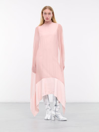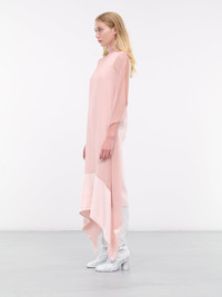 ALAINPAUL dress in pink, paneled silk chiffon & satin construction, draping throughout, turtleneck, sleeveless, armscyes, shoulder sheer draped paneling, asymmetric hem, maxi-length, relaxed fit. Made in Portugal Outer: 100% Silk Outer 2: 100% Viscose Standard Sizing Model is 5'8" wearing size S. Bust: 31" Waist: 23.5" Hips: 34"