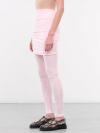 ALAINPAUL leggings in pink, paneled stretch cupro construction, draping throughout, fitted waist, pencil skirt overlay, straight leg, form fit. Made in Portugal 94% Cupro 6% Elastane Standard Sizing Model is 5'8" wearing size S. Bust: 31" Waist: 23.5" Hips: 34"