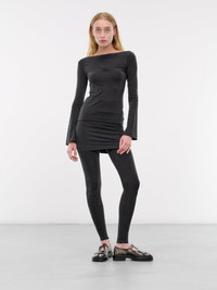 ALAINPAUL leggings in black, paneled stretch cupro construction, draping throughout, fitted waist, pencil skirt overlay, straight leg, form fit. Made in Portugal 94% Cupro 6% Elastane Standard Sizing Model is 5'8" wearing size S. Bust: 31" Waist: 23.5" Hips: 34"